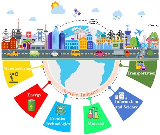 Christensen first introduced the concept of disruptive innovation [2]. Subsequently, the theory has been widely discussed and applied in various industries. While there are various perspectives on disruptive innovation, one practical application is the prediction and management of disruptive technologies. Recognising the emergence of new, potentially disruptive technologies and trends is a challenge that can be addressed by forecasting change and being proactive through comprehension of the mechanics of innovation, determining future drivers, and gathering information [3]. Studies on disruptive innovation forecasting rely on empirical evidence, hindsight evaluation technology roadmap scenario analysis, diffusion models, the literature, and patent-based methods. However, disruptive technologies are mostly ex post and difficult to predict. Furthermore, ex ante prediction and evaluation frameworks are not well established [4]. Previous studies have explored the impact of disruptive technologies on multiple aspects of smart cities, including transportation and mobility, health, real estate, and smart homes [5,6]. Some studies have focused on one or several specific fields of disruptive technologies in smart cities such as IoT, AI, big data, and blockchain [7,8,9,10]. This narrow focus limits our understanding of the full potential and impact of disruptive technologies on cities and fields within them [11]. Therefore, a more comprehensive approach is required to understand the roles of these technologies in shaping smart cities. This study explores the potential challenges and opportunities of seven key technologies and applications that are crucial for the development of a smart cities. From the perspective of technological breakthroughs and cutting-edge technology, these fields encompass information science, material science, manufacturing, transportation, the modern service industry, and frontier research.