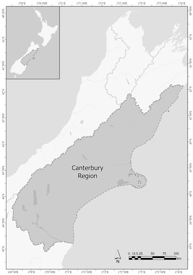 The Canterbury region of the South Island of New Zealand (source: created by Peter Pletnyakov based on Stats NZ’s data [49]).