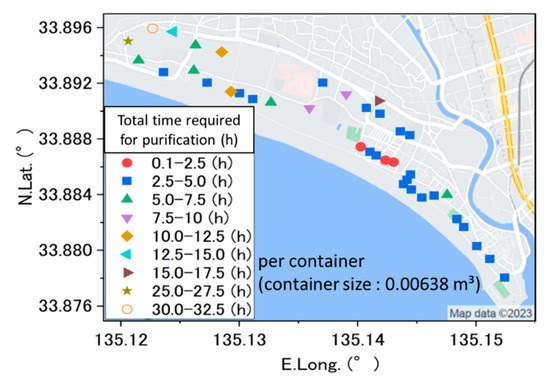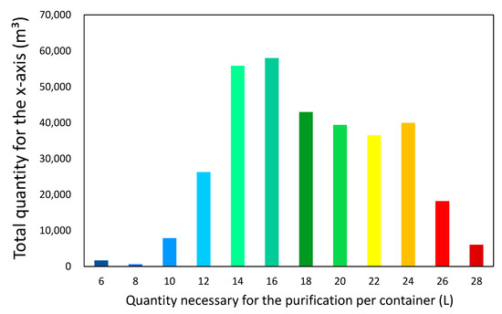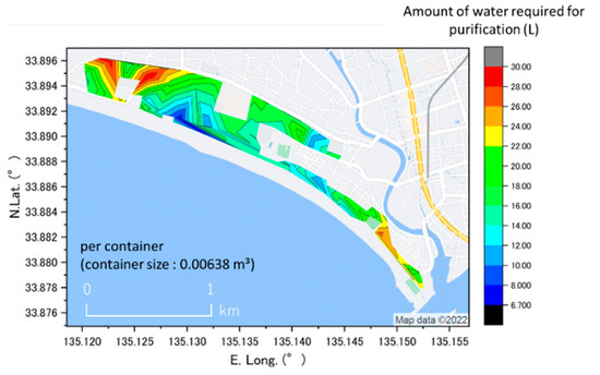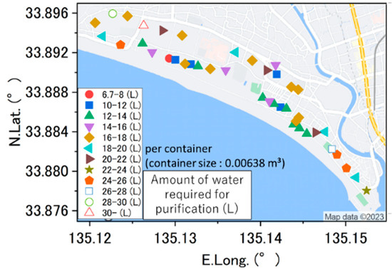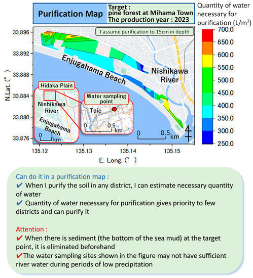 4.4. Relationship between the Area to Be Purified and the Amount of Water Required for Purification