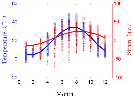 - Xia, Q.; Cheng, Y.Y.; Zhang, J.; Zhu, F.Q. In-Service Condition Assessment of a Long-Span Suspension Bridge Using Temperature-Induced Strain Data. J. Bridge Eng. 2017, 22, 04016124. [Google Scholar] [CrossRef]