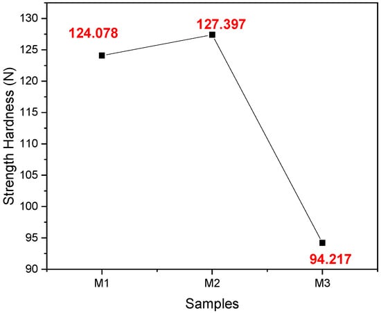 Average values were obtained from the hardness test of samples M1, M2, and M3 with their respective replicates.