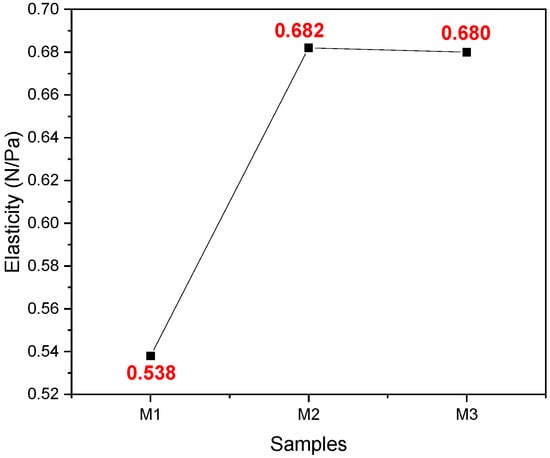 In Figure 6, it can be seen that the average elasticity of sample M2 is greater than sample M1, while M2 and M3 had equal values, that is, they had the same elasticity capacity.