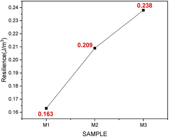 In Figure 7, it can be seen that the average resilience of sample M3 is higher than samples M1 and M2, that is, it had a greater ability to recover its shape when subjected to force.