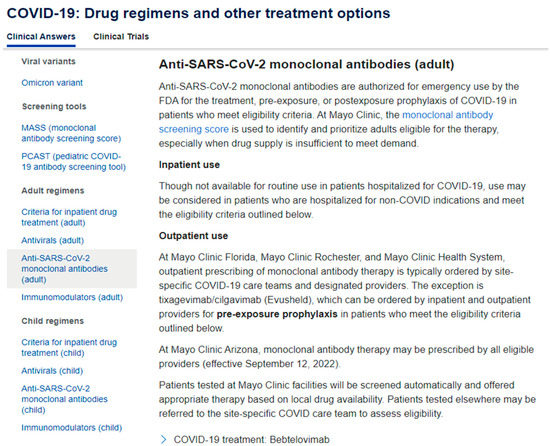AskMayoExpert COVID-19 knowledge base. [Available online: https://ce.mayo.edu/content/askmayoexpert, accessed on 3 January 2023].