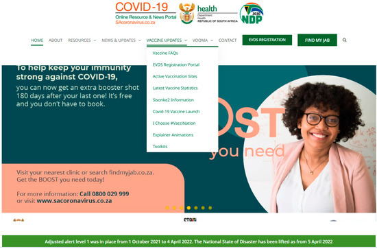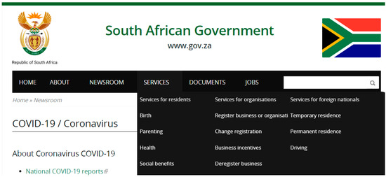 Website 2 (https://www.gov.za/Coronavirus, accessed on 26 February 2023).
