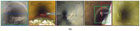 However, there are still some shortcomings in our proposed algorithm—mainly due to the complexity and large number of parameters of the network, which inevitably leads to slower detection speed compared to other single-stage object detection networks. Nevertheless, given the current situation where detection companies still rely on the manual observation of video recordings to search for defects, there is an urgent need for an intelligent method to replace the existing manual defect searching method. Considering the special nature of drainage pipeline defect detection, our algorithm can achieve higher detection accuracy and better meet practical needs.