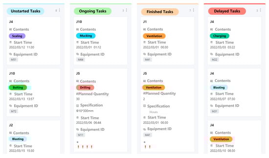 Underground mine scheduling is a complex system engineering process that involves the integration of various technologies, including automation control, the Internet of Things (IoT), sensing, digital mining, machine learning, network communication, and mining operation management. The objective of this process is to analyze the deviation between the actual and planned schedule of mining equipment through information-awareness-driven means and seek a dynamic global collaborative optimization solution within short intervals. The following specific requirements must be achieved: