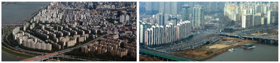 47]. On the other hand, access to the Hangang riverfront as a public green space is inequitable, because the numbers of users and user groups are limited due to the highways and large-scale residential complexes. This is the main reason that limits the flexibility of the riverfront in providing various programs to a broad spectrum of users. Introducing connective infrastructure is unavoidable for overcoming this disconnect between the urban area and the riverfront.