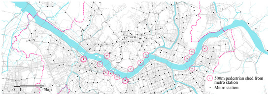 Figure 3 shows the location of the metro stations within 500 m of the river edges.
