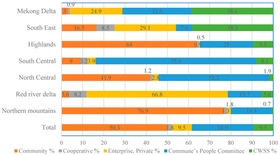 The proportion of management models for Vietnam rural water supply systems. Source: Directorate of Water Resources [33].