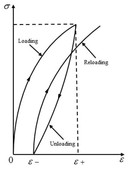 where is the loading deformation modulus, is the unloading deformation modulus, is the axial elastic strain, and is the axial plastic strain.