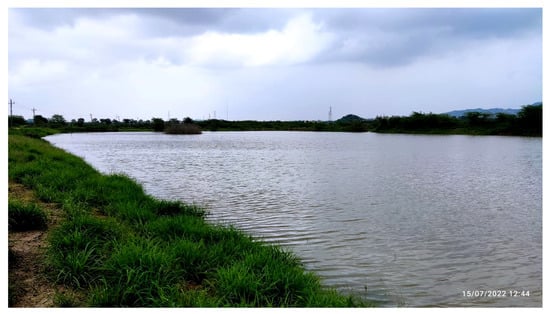 - Reddy, K.S.; Kumar, M.; Rao, K.V.; Maruthi, V.; Reddy, B.M.K.; Umesh, B.; Ganesh Babu, R.; Reddy, K.S.; Vijayalakshmi; Venkateswarlu, B. Farm Ponds: A Climate Resilient Technology for Rainfed Agriculture; Planning, Design and Construction; Central Research Institute for Dryland Agriculture: Hyderabad, India, 2012; p. 60. [Google Scholar]