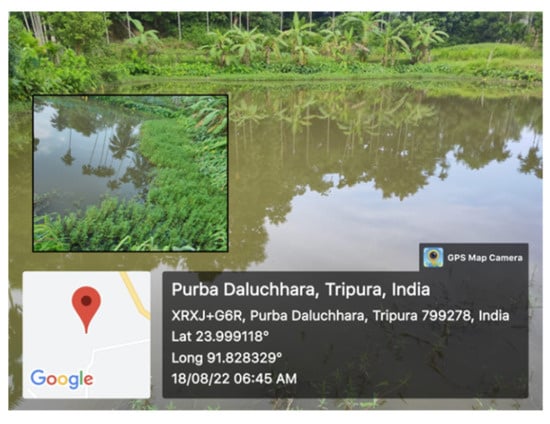 (iii) The Hathai Kotor village in Jirania subdivision of West Tripura district is located at 23°59′56.83″ N latitude and 91°30′24.46″ E longitude with altitude of 82 m MSL. The minimum temperature in the winter season ranges from 12.2 to 25.2 °C, and the maximum temperature ranges from 24.6 to 32.1 °C. The average annual rainfall is 200.39 cm, and the soil is red laterite that suffers from water scarcity in the hilly part of the landscape.