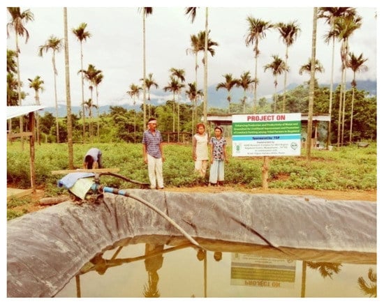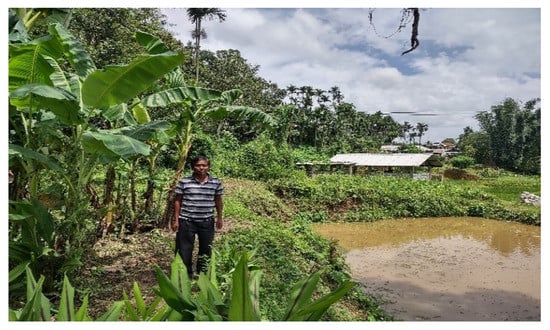 - Ray, S.K.; Chatterjee, D.; Rajkhowa, D.J.; Baishya, S.K.; Hazarika, S.; Paul, S. Effects of integrated farming system and rainwater harvesting on livelihood improvement in North-Eastern region of India compared to traditional shifting cultivation: Evidence from an action research. Agrofor. Syst. 2019, 94, 451–464. [Google Scholar] [CrossRef]