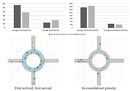 Lastly, the algorithm was set up to consider the conventional in-roundabout right-of-way: the priority is given to the vehicle inside the roundabout.
