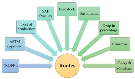 In order to evaluate the SAF pathways, a set of criteria was chosen to compare and analyze their potential and their readiness level to meet future demand, as shown in Figure 1.