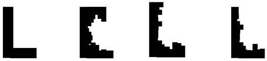 The generalization stage provides the most helpful segment to this process in that it begins the transformation to an applicable one-shot learning output result. This involves the usage of three different steps. The first, a feature selection technique called the local-learning algorithm [142,143,144,145,146], is applied to emerge the most suitable features from features extracted from raw signals. The second is to cluster and label the reduced features via the k-means clustering method. The proposed method performs successfully and achieves failure detection on various dataset types. Therefore, we have tried to find the point where the machine breaks down. This means we have 2 classes: failure or normal cases. The last step involves the construction of images from the extracted features and labels. The primary step is that the normalized features project to an L- or C-shape image shown in Figure 2 and structured similarly with the Omniglot dataset [147] regarding amplitude and obtained labels. These images are essential as their structure and attributes will define the result of the next step. The fundamental steps of the generalization process are given in Algorithm 1.