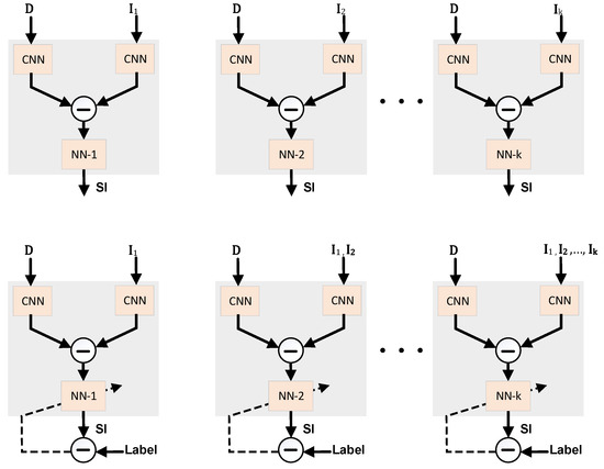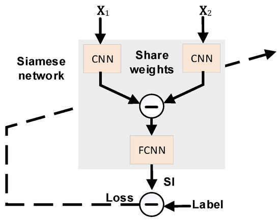 The main aim is to decrease the error between the and labels () by tuning the inner parameters of the Siamese network, shown in Figure 4. After the training process, the Siamese network can measure the similarity between inputs. Image samples obtained from the generalization process are utilized to finalize the proposed framework. The testing set is designed as: