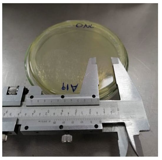 Later, we verified the formation of the acidification halo (purple color) generated by the reduction in the pH. We measured the halo diameter (cm) in each incubation. This semiquantitative test shows the nitrifying potential of bacteria [31].
