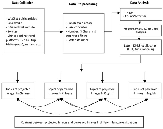Therefore, this study aims to utilize the natural language processing latent Dirichlet allocation (LDA) thematic modeling method to extract massive textual information pertaining to projected and perceived destination images from official DMO websites, social platforms, and tourism social platforms in both Chinese and English. By applying the LDA model, we can identify the underlying themes and attributes within the textual data, providing a deeper understanding of the projected and perceived images.