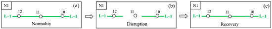 The recovery process of N1 after the full interruption of CGM station: (a) Normality, (b) Disruption, and (c) Recovery.