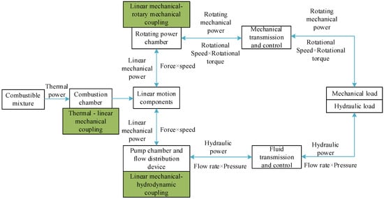 11]. Regarding the coupling mechanism analysis of the hydraulic engine in multiple fields, Huang, F. established a free-piston engine control body based on models of leakage, heat dissipation, electromagnetics, and combustion, and conducted experimental verification [