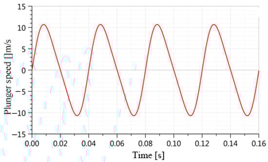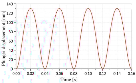 Figure 4 illustrates the coordination mechanism for the mechanical-to-fluid conversion during one working cycle of the hydraulic engine. The connection between the piston and the plunger is a secure attachment, and the movement characteristics of the plunger determine the flow rate characteristics of the output hydraulic oil. Both the piston and the plunger move in the same axial direction with consistent motion characteristics. In a complete cycle of engine operation, the reciprocating plunger pump completes two cycles of oil suction and pressure work [