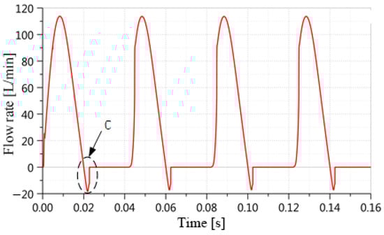 The change curve of the pump chamber oil port flow.