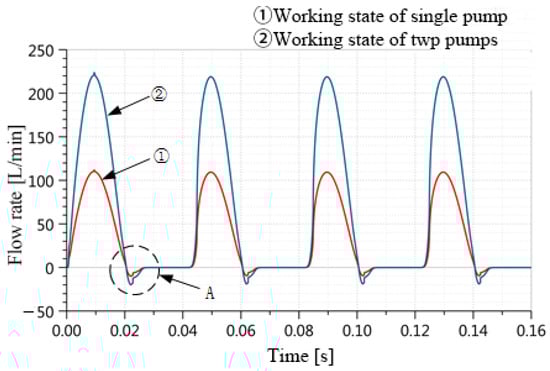 The output flow change curve of single and double pump under working condition.