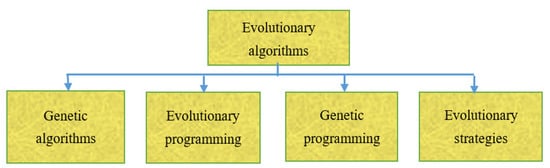 Metaheuristic optimization techniques are now the most common method to determine the best location, type, and size for FACTS units. These methods are easier to use when determining the best solution to problems than traditional methods. This group can be classified into four categories [18]: (i) evolutionary algorithms such as genetic algorithms (GA) [19], evolution strategy (ES) [20], evolutionary programming (EP) [21], genetic programming (GP) [22]; (ii) physics-based algorithms such as the ant lion optimization (ALO) technique [23], biogeography-based optimizer (BBO) [24], curved space optimization (CuSO) [25], flower pollination algorithm (FPA) [26], galaxy-based search algorithm (GBSA) [27], gravitational search algorithm (GSA) [28], harmony search algorithm (HAS) [29], multiverse optimization (MVO) algorithm [30], simulated annealing (SA) [31], atom search optimization (ASO) algorithm [32]; (iii) swarm-based algorithms such as particle swarm optimization (PSO) [33], whale optimization algorithm (WOA) [34], artificial bee colony (ABC) [35], chemical reaction optimization (CRO) algorithm [36], crow search algorithm (CSA) [37], cat swarm optimization (CaSO) algorithm [38], cuckoo search (CS) [39], dragonfly algorithm (DA) [40], bats algorithm (BA) [41], firefly algorithm (FFA) [42], grasshopper optimization algorithm (GOA) [43], gray wolf optimizer (GWO) [44], honey-bee mating optimization (HBMO) [45], moth–flame optimization (MFO) algorithm [46], bacterial swarm optimization (BSO) [47], immune algorithm (IA) [48], symbiotic organism search (SOS) algorithm [49], etc.; and (iv) other population-based algorithms such as the black hole (BH) algorithm [50], parallel seeker optimization algorithm (PSOA) [51], imperialistic competitive algorithm (ICA) [52], sine cosine algorithm (SCA) [53], teaching–learning-based optimization (TLBO) algorithm [54], water cycle algorithm (WCA) [55], bacterial foraging algorithm (BFA) [56], coyote optimization algorithm (COA) [57], and the tabu search (TS) algorithm [58,59].