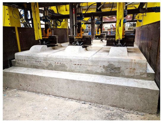 The chosen rail fastening system was the 300-1 Vossloh. From bottom to top, the rail support consisted of three layers: an EPDM pad, which is a soft synthetic rubber rail pad, a steel baseplate, and an EVA, which is a stiff copolymer pad for rail seating. The static stiffness of the EPDM was approximately 22.5 kN/mm and the dynamic stiffness was approximately 40 kN/mm. The static stiffness of the EVA pad was around 600–700 kN/mm and the dynamic stiffness was approximately 1600–1800 kN/mm. The cut rail segments used in the slab track test were 60E1 (UIC 60). The only purpose of the rail segments was to connect the fastenings of the slab to the actuators. The concrete slab track was subjected to more than 3 million load cycles and there was no evidence of cracks on the slab.