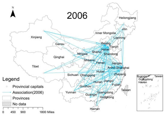 The network structures of the spatial association networks in 2006, 2012, and 2019 are shown in Figure 5, Figure 6, and Figure 7, respectively.