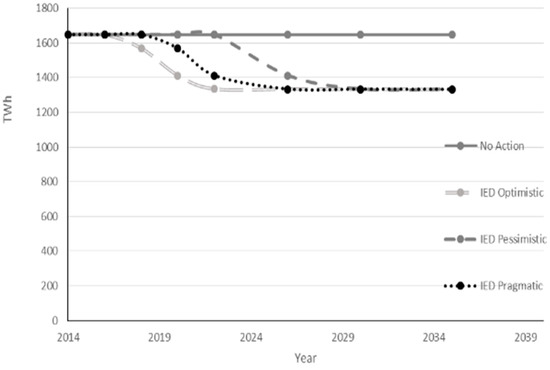 EU studies’ predictions on final energy consumption by applying IED BAT measures for the 2014–2035 period. Based on data obtained from EC’s working document, Annex Ε [24].