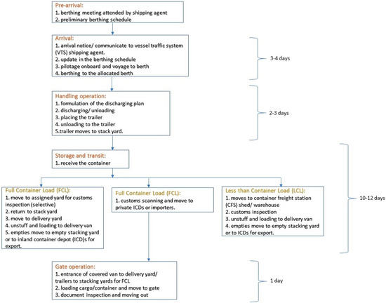 The process flow with required times in Chittagong port. Source: prepared by the author based on different sources.