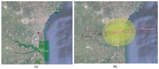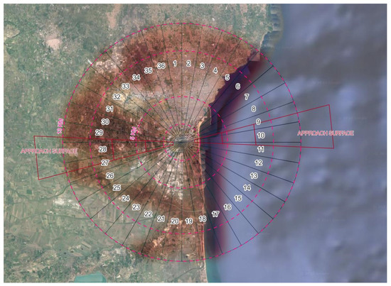 Furthermore, the main ‘obstacle-free zones’ (OFZs), besides airport grounds, were uploaded to the GIS project with specific attention to ‘approach surfaces’ (Figure 2).