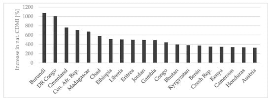 The Sunbelt region includes 85 countries and territories (such as the Western Sahara). Based on SSP3 data from Wang for 2020 [91], the Sunbelt is home to approximately 3.8 billion people in the northern hemisphere and 290 million people in the southern hemisphere. Thus, about half the world’s population lives in the Sunbelt region. In 2020, an estimated 324 urban agglomerations, more than every second worldwide, with more than one million inhabitants located in the Sunbelt [22]. It is defined by a great variety of countries in several terms (Figure 3). The human development index (HDI) of the Sunbelt countries ranges from 0.397 in Chad to 0.947 in Australia [92].