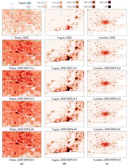 To picture reliable future developments of cooling relevant parameters in this study, two scenarios of wide scientific application [95,96,97], i.e., the contribution of Working Group I to the Intergovernmental Panel on Climate Change (IPCC) Fifth [98] and Sixth [99] Assessment reports (The Physical Science Basis), have been chosen. These two scenarios are the Representative Concentration Pathways (RCP) and the Shared Socioeconomic Pathways (SSP).
