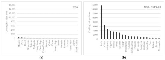 An important study on the future market for cooling is the Future of Cooling report, published by the IEA in 2018 [6]. This report puts focus on the historical and future development of global cooling energy demand per country. It takes into consideration the worldwide increase in CDD and outlines the importance of demographic and economic developments. Enerdata published a report in 2019 [107] on the current state of air conditioning (AC) in households. The report concludes that the future sale of AC units will increase. However, the report further concludes that a prediction on energy consumption shows great deviation, depending on both space cooling demand and the building quality and the efficiency of cooling applications. The 2009 study by Isaac and van Vuuren [108] predicts the residential energy demand for heating and cooling for both 2050 and 2100. The applied methodology in this study also makes use of population density, climate condition represented in CDD and economic power given in GDP/capita, besides data for housing area and efficiency of cooling systems. The study’s outcomes indicate an enormous increase in cooling demand in developing countries, especially in Asia. The study with the most related methodology was performed by Andrijevic et al. and published in an article in 2021 [109]. This study focuses on the identification of gaps in the access to cooling applications, quantified in the share of the population that lacks access to cooling. The methodology is also based on both RCP and SSP scenarios and additionally considers financial inequality and urbanization. Furthermore, GIS software with a grid raster of approximately 50 km was used to estimate the heat impact, quantified via CDD, on the population.