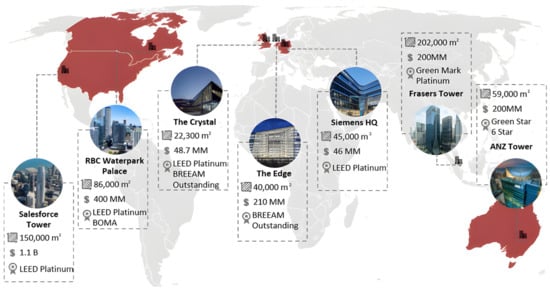 - Siemens. The Crystal: One of the Most Sustainable Buildings in the World. 2015. Available online: https://www.inawe.in/wp-content/uploads/2015/12/The-Crystal-Sustainability-Features.pdf (accessed on 9 April 2022).