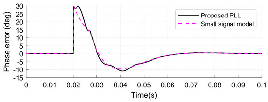 - A phase jump of 30 degrees is applied at 0.02 s (see Figure 7a).