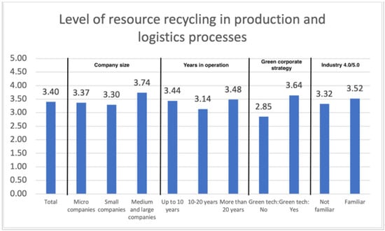 Those familiar with Industry 4.0/5.0 have a higher tendency towards using green technologies (2.77) than those who are not familiar with it (2.37). Also, the highest tendency towards green technologies is present in small companies (2.64) and companies up to 10 years present on the market (2.75).