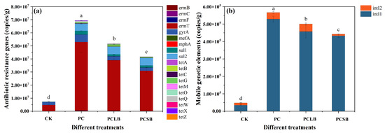 - Tong, Z.; Liu, F.; Tian, Y.; Zhang, J.; Liu, H.; Duan, J.; Bi, W.; Qin, J.; Xu, S. Effect of Biochar on Antibiotics and Antibiotic Resistance Genes Variations During Co-Composting of Pig Manure and Corn Straw. Front. Bioeng. Biotechnol. 2022, 10, 960476. [Google Scholar] [CrossRef] [PubMed]