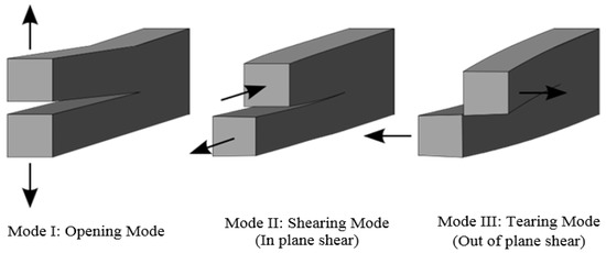 In most cases, it causes the material to transform into a different shape. The cement sheath can debond at the following interfaces [11]: cracking of the cement sheath, which could allow radial and vertical migration of fluids (Figure 1a); plastic deformation in the cement sheath, which could allow radial and vertical migration of fluids (Figure 1b); the rock–cement interface (Figure 1c); and the cement–casing interface (Figure 1d). In addition, the pressure and thermal cycle damage the cement sheath’s integrity (sealing integrity and mechanical integrity), leading to gas leakage. The failure mode of a downhole cement sheath can be divided into four categories: (1) debonding/micro annulus at the interface of the cement sheath, (2) shear/tensile failure of the cement sheath, (3) radial cracks of cement sheath, and (4) plastic deformation of the cement sheath [10,13]. Researchers have used Linear Elastic Fracture Mechanics (LEFM) parameters and Elastic-Plastic Fracture Mechanics (EPFM) parameters in the literature to characterize the fracture resistance of cement paste, mortar, cement concrete, polymer concrete, and rocks. Figure 2 shows that the fracture mechanics field considers three distinct crack propagation modes. Mode I, the opening crack propagation model, is caused by a tensile stress field. The shearing or sliding mode that results from in-plane shear is Mode II. Mode III, also known as the tearing mode, is caused by shear outside the material’s plane [15]. In engineering practice, the stress state near the tip of a sharp crack is more useful. In a linear elastic material, the stress intensity factor (KI) characterizes the crack tip conditions [13,14,15]. If KI is known, simple equations can be used to determine how the stress is distributed at the crack tip. No study was conducted on evaluating the fracture behavior of oil well cement at different heights of the initial crack.