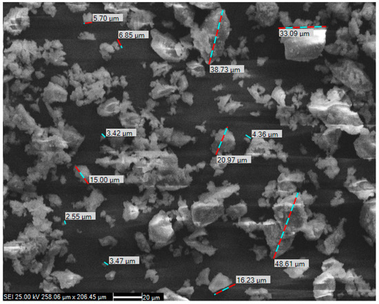 Figure 4 displays the results of the SEM analysis, which revealed that the diameter sizes of the cement particles ranged from 2.55 to 48.61 µm.