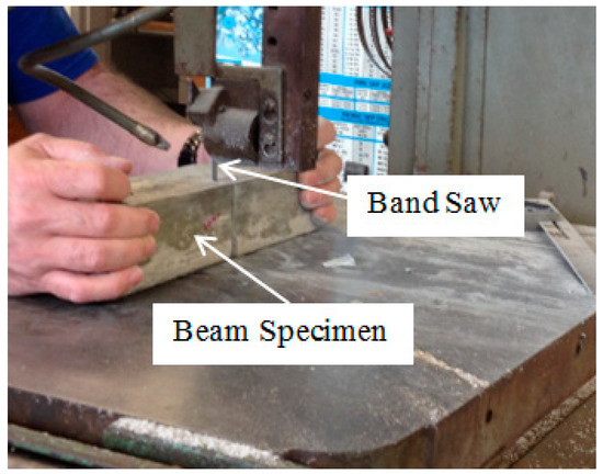 The ASTM C293/C293M-10 standard [20] called for a three-point bending test. The dimensions of the specimen beam were 280 × 76 × 76 mm. A Vernier caliper was used to measure the specimen’s dimensions for stress analysis. Strain gauges were installed on the tension and compression fibers near the midspan. Equation (1) was utilized in the strength calculation: