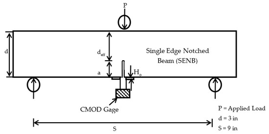 For a three-point bend test specimen, by using the concept of the linear elastic fracture mechanic (LEFM), the crack length can be obtained from the relationship between the elastic crack mouth opening displacement and the corresponding crack length as shown in Equation (12).