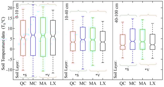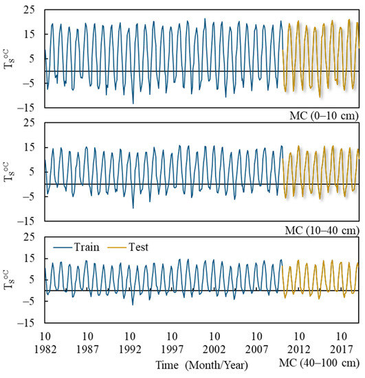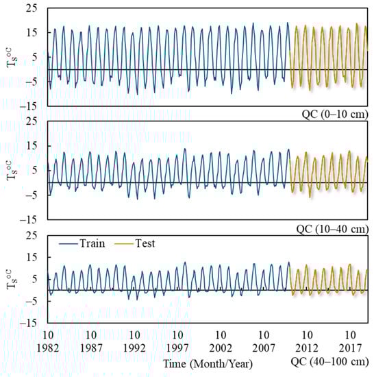 Soil temperature (TS) is one of the essential environmental factors used in various disciplines such as engineering and hydraulic structures design, geotechnics, hydrological and meteorological studies, agriculture, forestry, and many other fields. The majority of the chemical and physical characteristics of soil are temperature-dependent. For instance, fluctuations in TS directly affect water infiltration; thus, variations in TS and infiltration rates follow similar patterns [1,2,3]. Soil temperature may affect other processes, such as groundwater discharge, land–atmosphere fluxes such as evapotranspiration, gas exchange, and surface runoff patterns [4,5,6]. Fluxes of greenhouse gases such as carbon dioxide (CO2) and nitrous oxide (N2O) directly depend on TS [7,8], which relates to global warming on a large scale. Any alterations to atmospheric constituents mutually affect the soil temperature. Because the thermal energy balance between the soil and atmosphere is preserved, the soil can either act as a heat source or sink [9,10,11,12]. Similarly, the impact of TS on the agriculture section cannot be ignored, e.g., the dependency of crops’ growth on TS, irrigation planning, and hydrological drought monitoring [13,14].