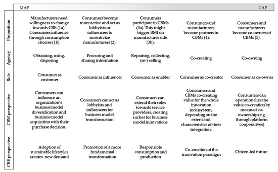 - As the MAP–CAP continuum focuses on the fluctuating roles between manufacturers and consumers, future research should also aim at incorporating other innovation system actors into the agency continuum (e.g., academia, local communities, and other knowledge carriers) in the sense of a “stakeholder-active paradigm”, thus also linking back to the broader literature on (dedicated) innovation systems [40,41,65].