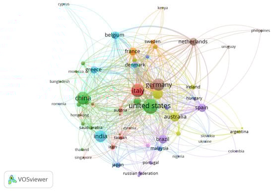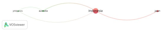 Furthermore, countries intensely conducting PA research are Italy, with 24 links and 233 documents; Germany, with 37 links and 209 documents; and China, with 29 links and 233 documents. At the same time, the analysis in Indonesia uses a minimum of three research articles (due to limited data). Indonesia has the strongest PA research collaboration links with Australia, the Philippines, and Japan, with a total strength of 12 collaborative links to produce 57 PA research documents (Figure 2).