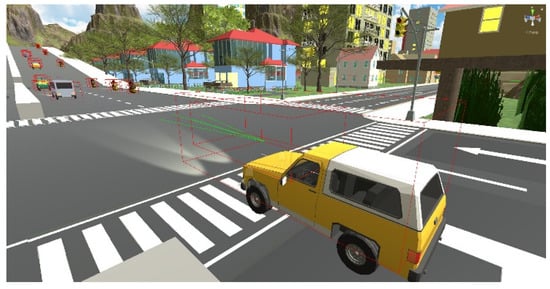 - Dosovitskiy, A.; Ros, G.; Codevilla, F.; López, A.; Koltun, V. CARLA: An Open Urban Driving Simulator. In Proceedings of the 1st Annual Conference on Robot Learning, Mountain View, CA, USA, 13–15 November 2017. [Google Scholar]